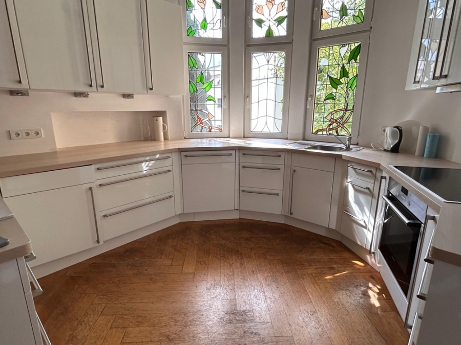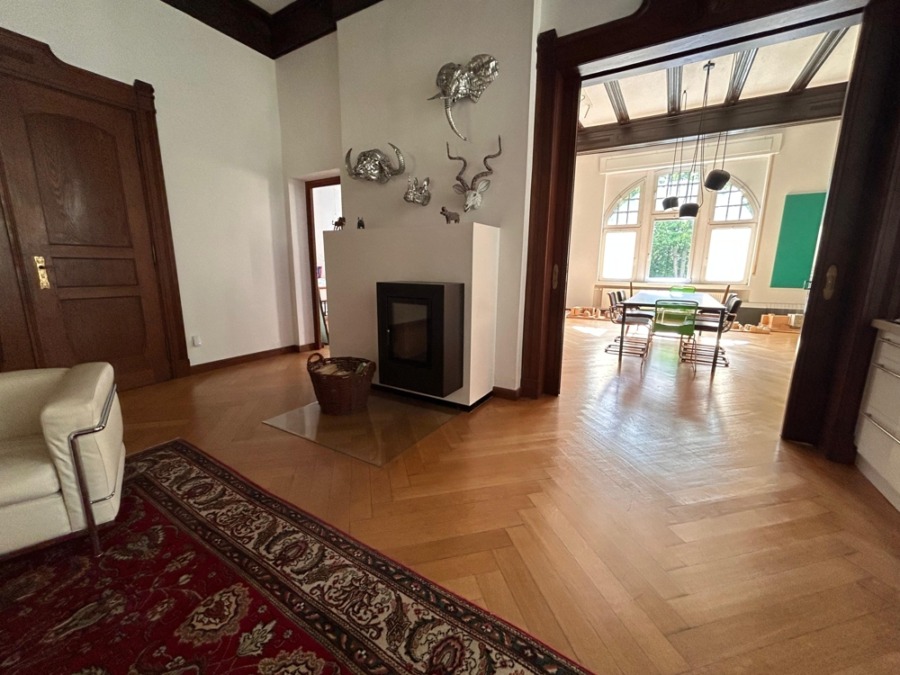 In einer charmanten Villa im Altbaustil erwartet Sie eine einzigartige Gewerbefläche mit rund 240 m², die durch ihre Kombination aus historischem Flair und hochwertiger Ausstattung besticht. Großzügige Räume mit hohen Decken, edle Parkettböden im Fischgrätmuster und große Fensterfronten schaffen ein helles, inspirierendes Ambiente, das sowohl repräsentativ als auch funktional überzeugt.