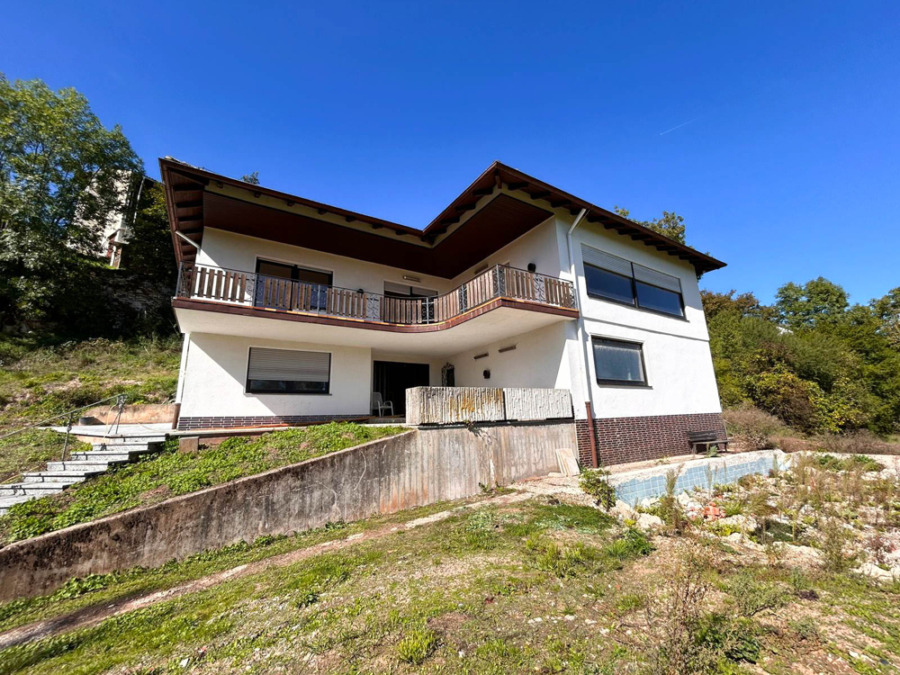 Die Wohnfläche von ca. 295 m² verteilt sich auf zwei Ebenen. Im Erdgeschoss gelangen Sie über einen separaten Hinterhausgang direkt in den Garten. Das Obergeschoss überzeugt mit einem Balkon, der von mehreren Wohn- und Schlafräumen aus begehbar ist. Von hier – wie auch vom gesamten Haus – genießen Sie einen herrlichen Weitblick ins Grüne.