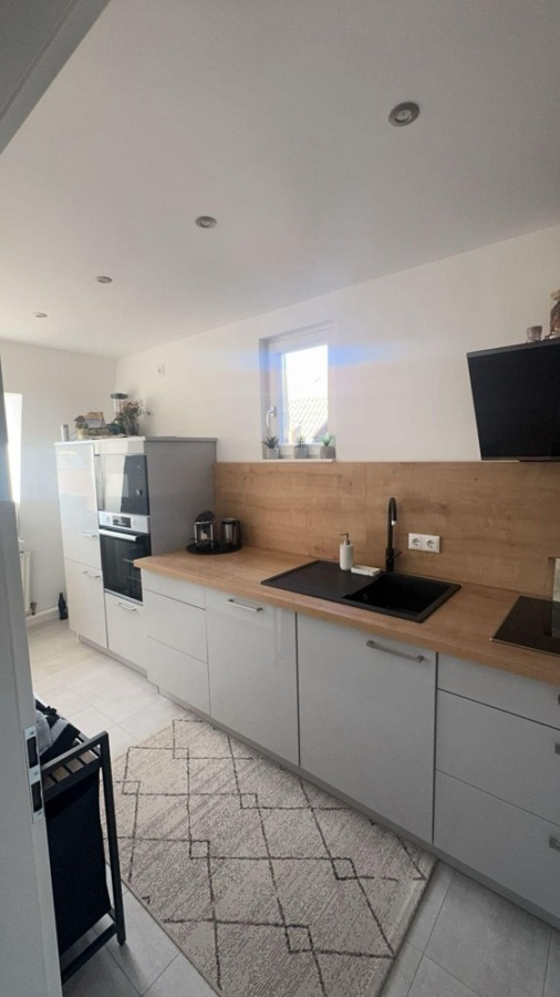 Das Badezimmer wurde vollständig erneuert und präsentiert sich modern. Zudem ist in der Wohnung ein praktischer Waschmaschinenanschluss vorhanden. Die vorhandene Einbauküche ist mit Markengeräten ausgestattet und lässt keine Wünsche offen.